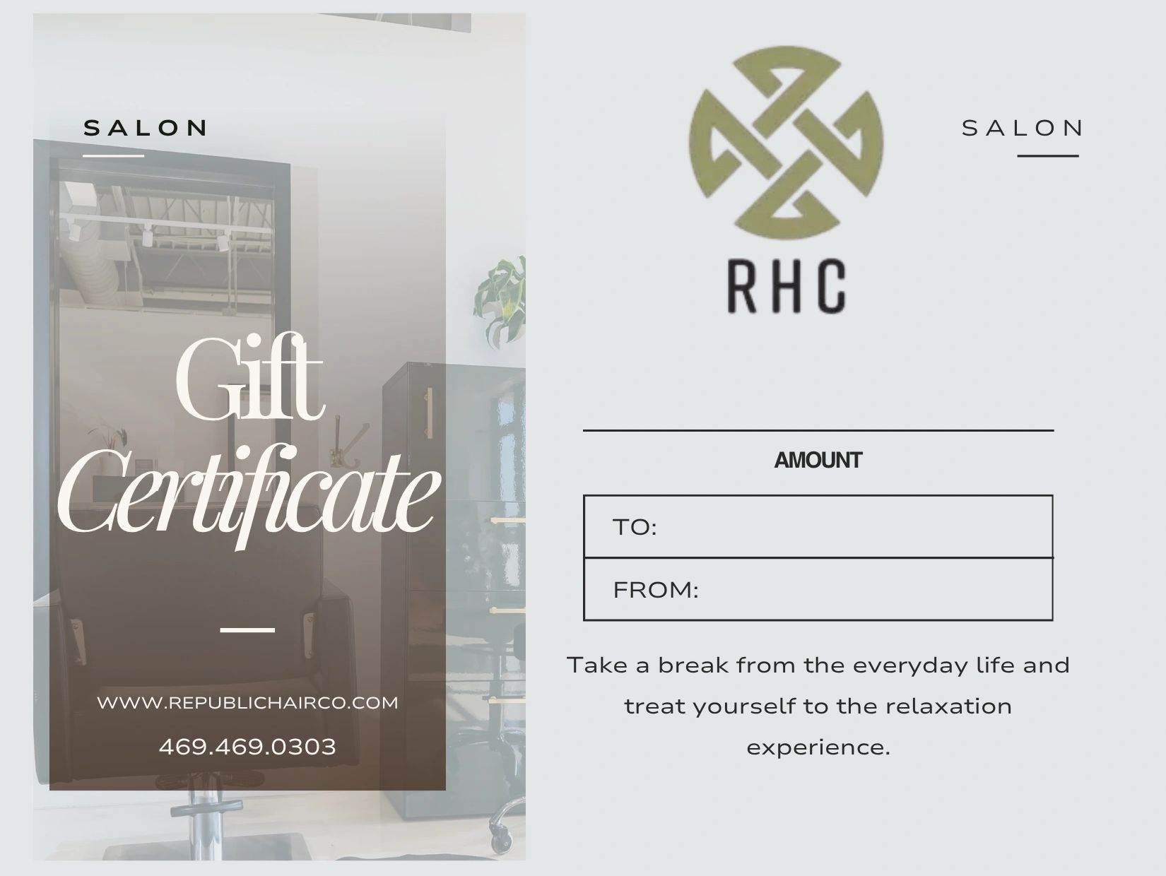 Not sure what to get? Give a Republic Hair Co. gift card and let your special someone choose from our range of beauty treatments to suit their unique needs.