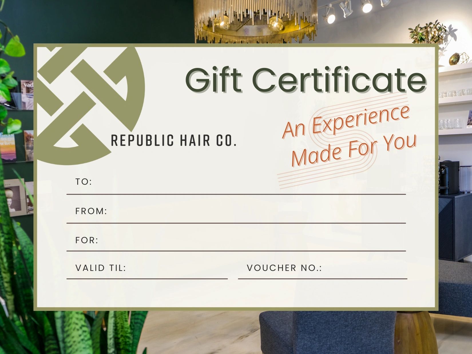 Give them something they’ll actually love — Republic Hair Co. gift certificates, available instantly online.